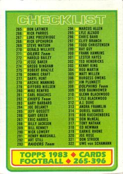 #396 Checklist (265-396) - 1983 Topps Football